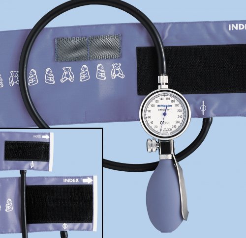 O esfigmomanómetro portátil da mão babyphon® é ideal para consultórios e hospitais pediátricos e é fornecido com uma gama completa de mangas para crianças, bebés e recém-nascidos.