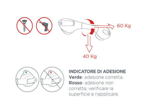 Barras de apoio com ventosa são projectadas para serem usadas somente em superficies lisas e não porosas.