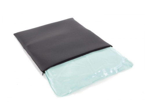 No interior, uma membrana de PVC de 400 mícrons contém uma folha de espuma de poliuretano de alta resiliência imersa numa solução de propilenoglicol