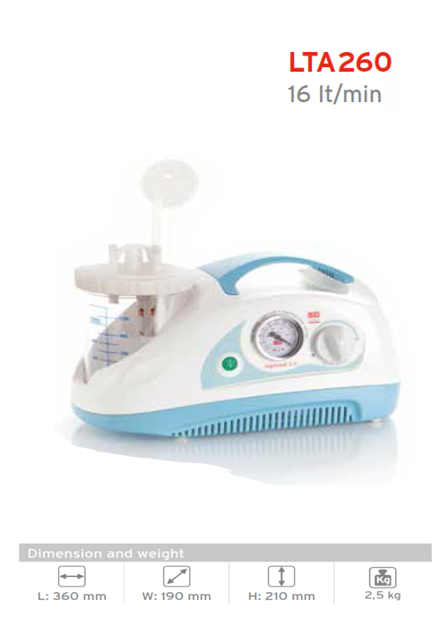 ASPIRADOR DE SECREÇÕES ASPIMED 2.2 - 16l/min, modelo LTA260